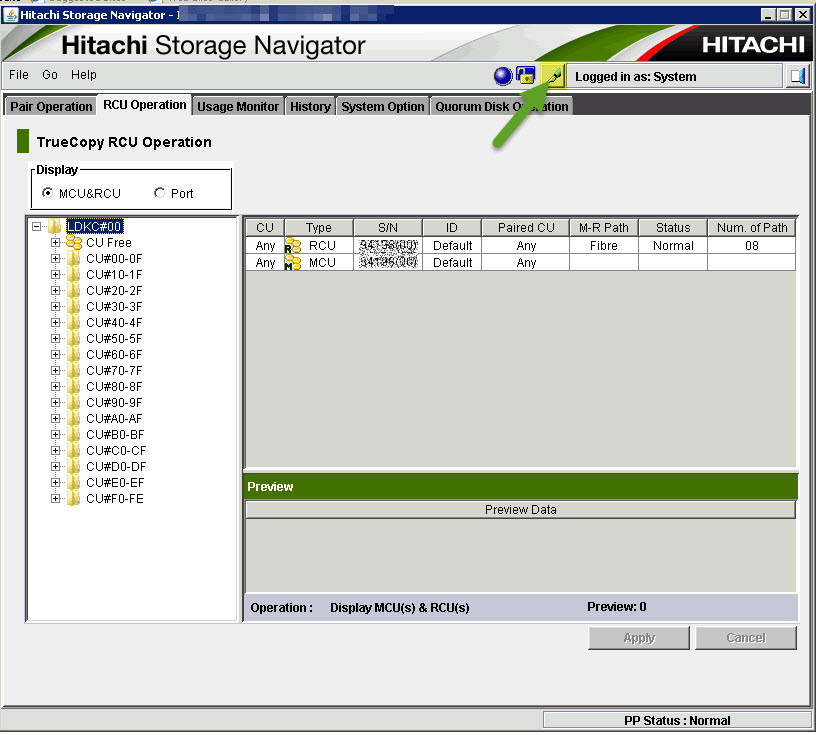 Now navigate to Actions\Remote Copy\TrueCopy\RCU Operation...